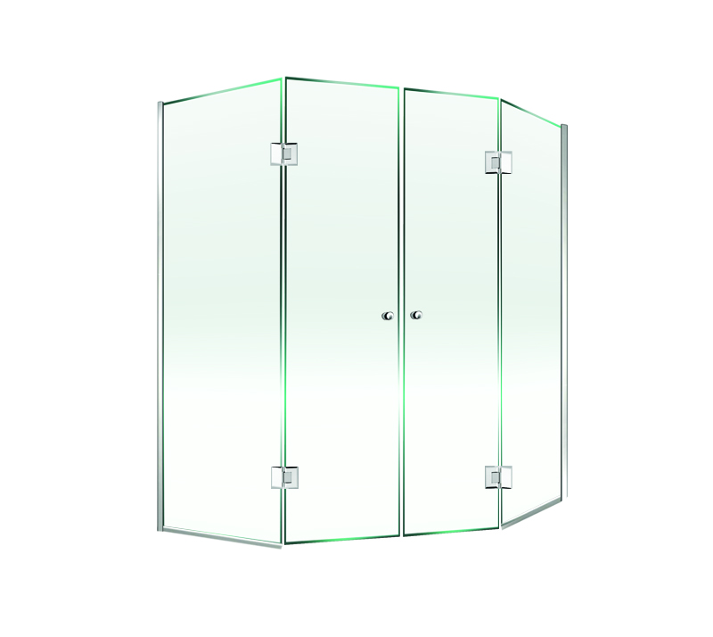 Type de produit : Cabine de douche à 90° avec porte battante, en verre transparent ou avec motif décoratif sablé, quincaillerie et accessoires inclus